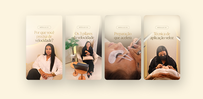 Hoje sou Master Educadora, 2x Campeã Nacional de Capping, Embaixadora Beautify Brasil, Palestrante e Jurada em eventos nacionais. CEO de duas clínicas que construí do zero. Já transformei mais de 1.000 lash designers que chegaram lentas e inseguras, e saíram rápidas e lucrativas.