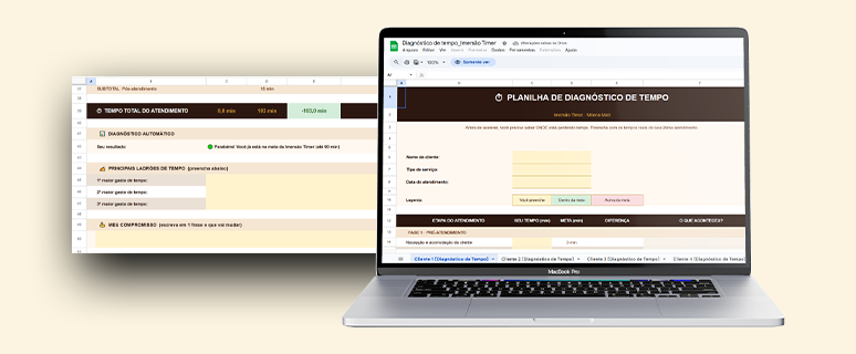 Antes de acelerar, você precisa saber ONDE está perdendo tempo. Essa planilha identifica os ladrões de tempo do seu atendimento. Você preenche uma vez e descobre exatamente o que precisa corrigir. Sem achismo. Só dados reais.